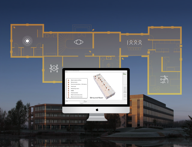 Løsningen kan inkludere en grafisk brugerflade, hvor du ser din ejendoms plantegning, og derfra nemt kan styre og få et samlet overblik.