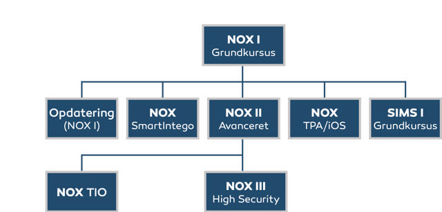 - Teknikere kan uddannes på niveau 1 til 3 i NOX, niveau 1 til 2 i SIMS, samt specialistkurser til iOS, TPA og SmartIntego.